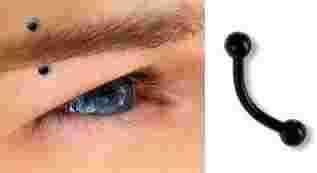 Przedmiotem aukcji jest kolczyk do brwi ze stali chirurgicznej 316L zagięty zakończony kuleczkami w kolorze czarnym.