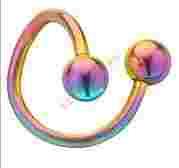 Przedmiotem aukcji jest kolczyk do ciała spirala w kolorze tęczowym z kuleczkami 3mm. Kolczyk do brwi, wargi, ucha, pępka i innych części ciała