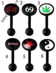 KOLCZYK DO JĘZYKA--AKRYL Z LOGO--1.6 x 16 mm