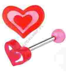 Przedmiotem aukcji jest kolczyk do języka e stali chirurgicznej 316L z akrylowymi nakrętkami - kulką i serduszkiem.