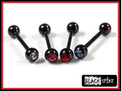 Kolczyk do języka czarny z kryształem - różne kolory 1 szt.