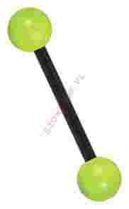 Przedmiotem aukcji jest kolczyk do języka z najwyższej jakości stali chirurgicznej oraz kulkami w kolorze jaskrawo zielono-żóltym.