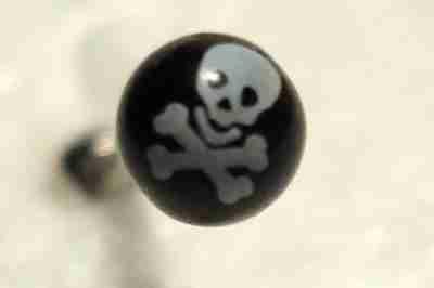 Kolczyk do języka czarny RASTA CZASZKA punk rock