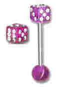 Kolczyk do języka FIOLETOWA KOSTKA Z KRYSZTAŁKAMI