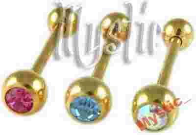 KOLCZYK DO JĘZYKA - GOLD LINE - Z KRYSZTAŁKIEM