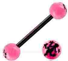 Przedmiotem aukcji jest kolczyk do języka z akrylowymi kuleczkami UV. Kolczyk jest na elastycznym czarnym sztyfciku.