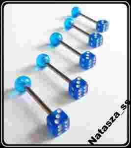 KOLCZYK DO JĘZYKA, STAL 316L, GRANATOWA KOSTKA