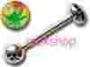 Przedmiotem aukcji jest kolczyk do języka z dyskiem z logo 'trawka' Zarówno dysk jak i dolna kuleczka odkręcają się.