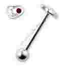 Przedmiotem aukcji jest kolczyk do języka z serduszkiem z czerwonym kryształkiem