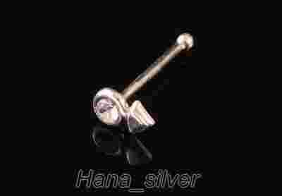 Kolczyk do nosa strzałka z cyrkonią nos srebro 925