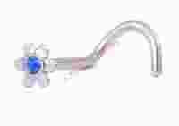 Przedmiotem aukcji jest kolczyk do nosa zagięty zakończony kwiatuszkiem z szafirowym kryształkiem. Kolczyk wykonany z certyfikowanej stali chirurgicznej.