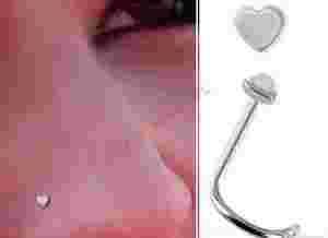 rzedmiotem aukcji jest zagięty kolczyk do nosa ze stali chirurgicznej 316L zakończony malutkim serduszkiem