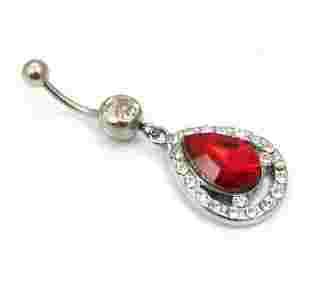 Kolczyk do pępka łezka z dużym czerwonym kamieniem