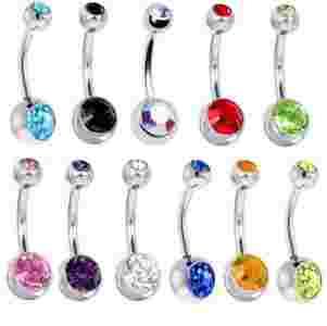 KOLCZYK DO PĘPKA 2 KRYSZTAŁKI 3+1 GRATIS 14 KOL.