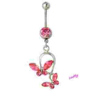 KOLCZYK DO PĘPKA 2 RÓŻOWE MOTYLE