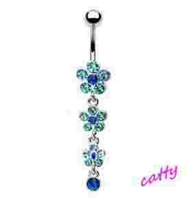 KOLCZYK DO PĘPKA 3 KWIATY KWIATKI NIEBIESKIE