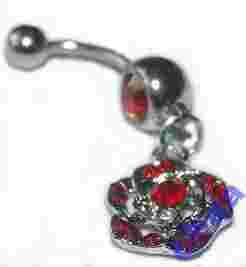 kolczyk do pępka cyrkonie czerwone piercing stal