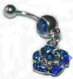 kolczyk do pępka cyrkonie niebieskie piercing stal