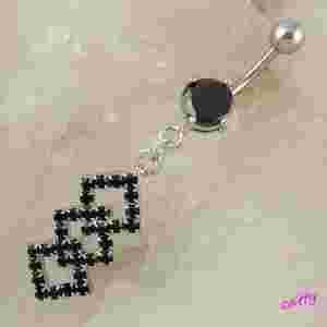 KOLCZYK DO PĘPKA CZARNE KWADRACIKI