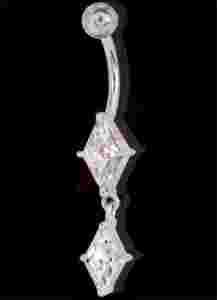 Przedmiotem aukcji jest kolczyk do pępka z białymi kryształkami w kształcie karo.