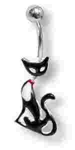 Kolczyk do pępka Kittenbell - Czarny kotek