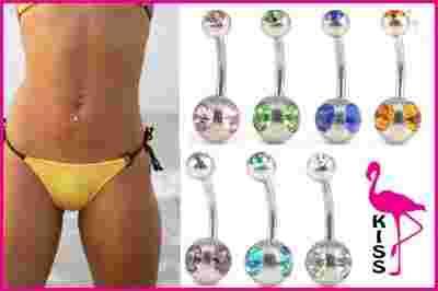 KOLCZYK DO PĘPKA KULKA 3 KRYSZTAŁKI PIERCING STAL