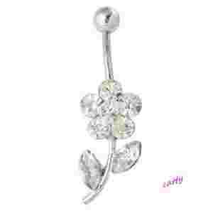 KOLCZYK DO PĘPKA KWIATUSZEK LIŚCIE CYRKONIE