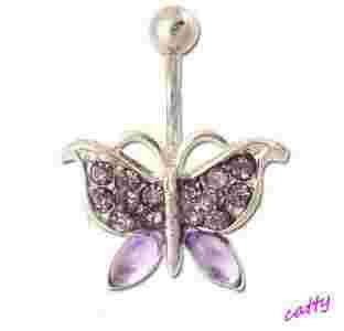KOLCZYK DO PĘPKA MOTYL CYRKONIE KRYSZTAŁKI FIOLET