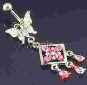 KOLCZYK DO PĘPKA - MOTYL I KWIATEK - EKSKLUZYWNY