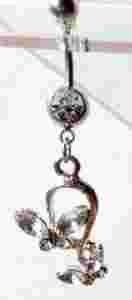 Przedmiotem sprzedaży jest kolczyk ozdobny do pępka z dwoma motylkami koloru białego. Długość banana 10 mm.Wielkość motywu ozdobnego 25 mm/ 18 mm. Wielkość kulek 5 i 8 mm. Kolczyk jest wykonany ze stali chirurgicznej 316 L, zdobiony białymi cyrkoniami. Prezentuje się ślicznie, jeszcze ładniej niż na zdjęciu.