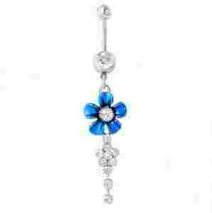 KOLCZYK do pępka NIEBIESKI KWIAT kwiatek P21