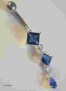 KOLCZYK DO PĘPKA NIEBIESKIE CYRKONIE SREBRO pr.925