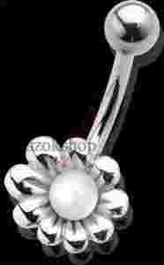 KOLCZYK DO PĘPKA PERŁOWY KWIATUSZEK SREBRO 925