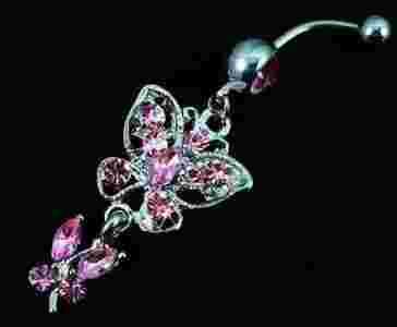 Kolczyk do pępka RÓŻOWY MOTYL P41