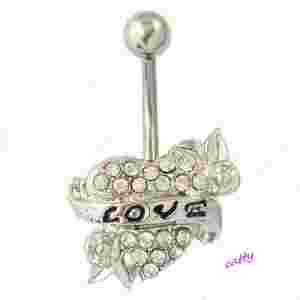 KOLCZYK DO PĘPKA SERCE NAPIS LOVE CYRKONIE