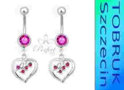 Kolczyk do PĘPKA Serce z Cyrkoniami Stal Różowy