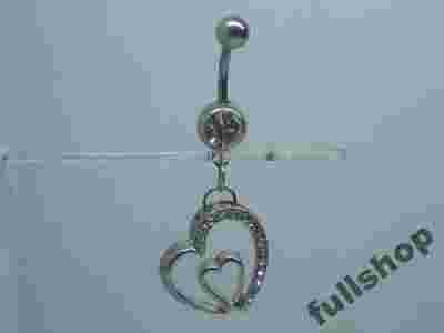 Kolczyk do Pępka - Serce z kryształkami BIAŁY