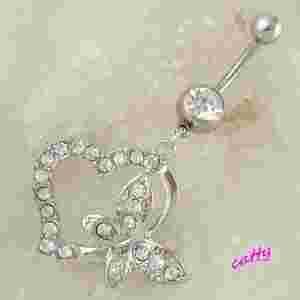 KOLCZYK DO PĘPKA SERCE Z MOTYLEM CYRKONIE CRYSTAL