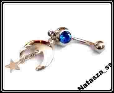 KOLCZYK DO PĘPKA, STAL 316 L, KSIĘŻYC GWIAZDKA