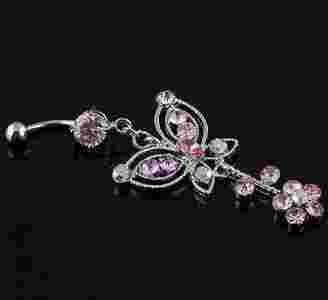 KOLCZYK do pępka SWAROVSKI RÓŻOWY MOTYL P21
