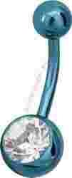 Przedmiotem aukcji jest kolczyk do pępka wykonany z i certyfikowanego tytanu G23 w kolorze niebieskim ( przepiękny intensywny odcień ) z białym kryształkiem w dolnej kuleczce.