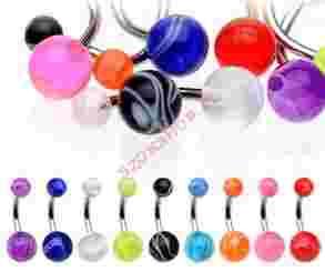 Przedmiotem aukcji jest komplet kolczyk do pepka z akrylowymi kulkami