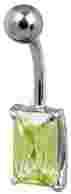 Przedmiotem aukcji jest kolczyk do pępka  prostokątnym kryształkiem w kolorze jasnozielonym przepięknie kontrastującym z opalenizną.