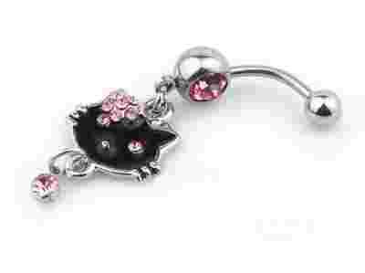 KOLCZYK DO PEPKA KOTEK KITTY KRYSZTALKI STAL MODNY