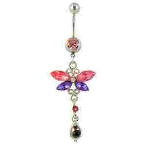 KOLCZYK DO PEPKA MOTYLEK KRYSZTALKI STAL CHIRURG.