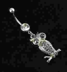 KOLCZYK DO PEPKA SOWA OWL KRYSZTALKI STAL CHIRURG.