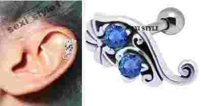 KOLCZYK DO UCHA CHRZĄSTKI 925 SREBRO LEWE NOWOŚĆ