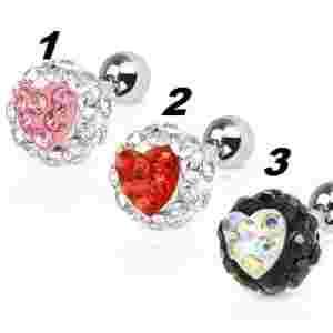 KOLCZYK DO UCHA CHRZĄSTKI TRAGUSA SERCE KRYSZTAŁK