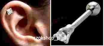 Przedmiotem aukcji jest kolczyk do górnej dziurki ucha z białym kryształkiem o średnicy 2mm