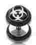 Przedmiotem aukcji jest kolczyk do ucha fake plug (oszykany plug) z dyskami z logo 'biohazard'